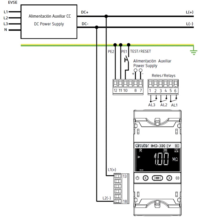 S'instal·la específicament en la infraestructura de recàrrega ràpida amb sistemes Combo CCS o CHAdeMO, recàrrega en CC, per monitorar de manera contínua l'aïllament del bus de contínua. Aquest monitoratge proactiu permet la detecció primerenca de fallades d'aïllament, un problema crític que pot comprometre tant el funcionament segur de l'estació de recàrrega com la integritat del vehicle elèctric. Amb l'IMD-300-EV, es garanteix una recàrrega segura i un funcionament ininterromput per a l'estació, per tant, es maximitza la disponibilitat del servei. IMD-300-EV està dissenyat d'acord amb la normativa IEC 61851-23, Mode 4, per a sistemes de recàrrega estàndard o combinat (CCS) o CHAdeMO.