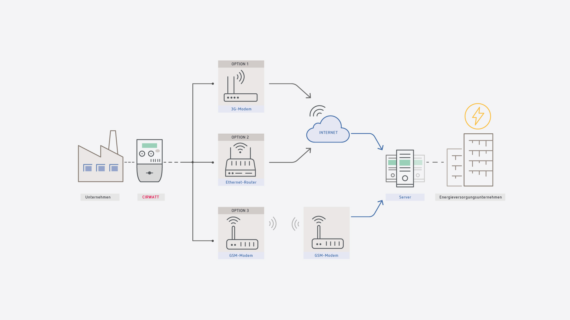 Die Nutzung aktueller Telekommunikationsnetzwerke über Geräte, die mit Stromzählern verbunden sind, ob Telefonmodems oder Router mit IP-Technologie, ermöglicht es uns, zuverlässige Informationen über den Energieverbrauch jedes Kunden zu erhalten. Die Installation von ferngesteuerten Messgeräten löst das Problem der Erfassung von Verbrauchsdaten, da alle Informationen automatisch an das unternehmenseigene Abrechnungssystem übermittelt werden, ohne dass ein menschliches Eingreifen erforderlich ist.