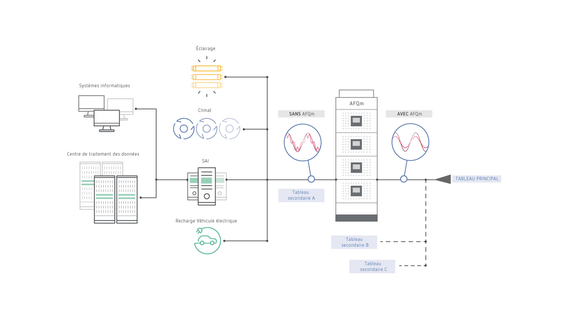L'utilisation d'équipements avec conversion de courant alternatif (CA) à courant continu (CC) s'est étendue aux applications industrielles. Les installations industrielles, telles que les variateurs de vitesse ou de fréquence, les systèmes d'automatisation et de contrôle, les systèmes de climatisation, les chambres froides, les monte-charges, les systèmes de pompage, les éclairages LED et actuellement les systèmes de recharge de véhicules électriques, sont devenues un utilisateur régulier de ce type de solutions. Cette technologie est une source de génération d'harmoniques qui provoquent un certain nombre de problèmes dans nos installations industrielles.