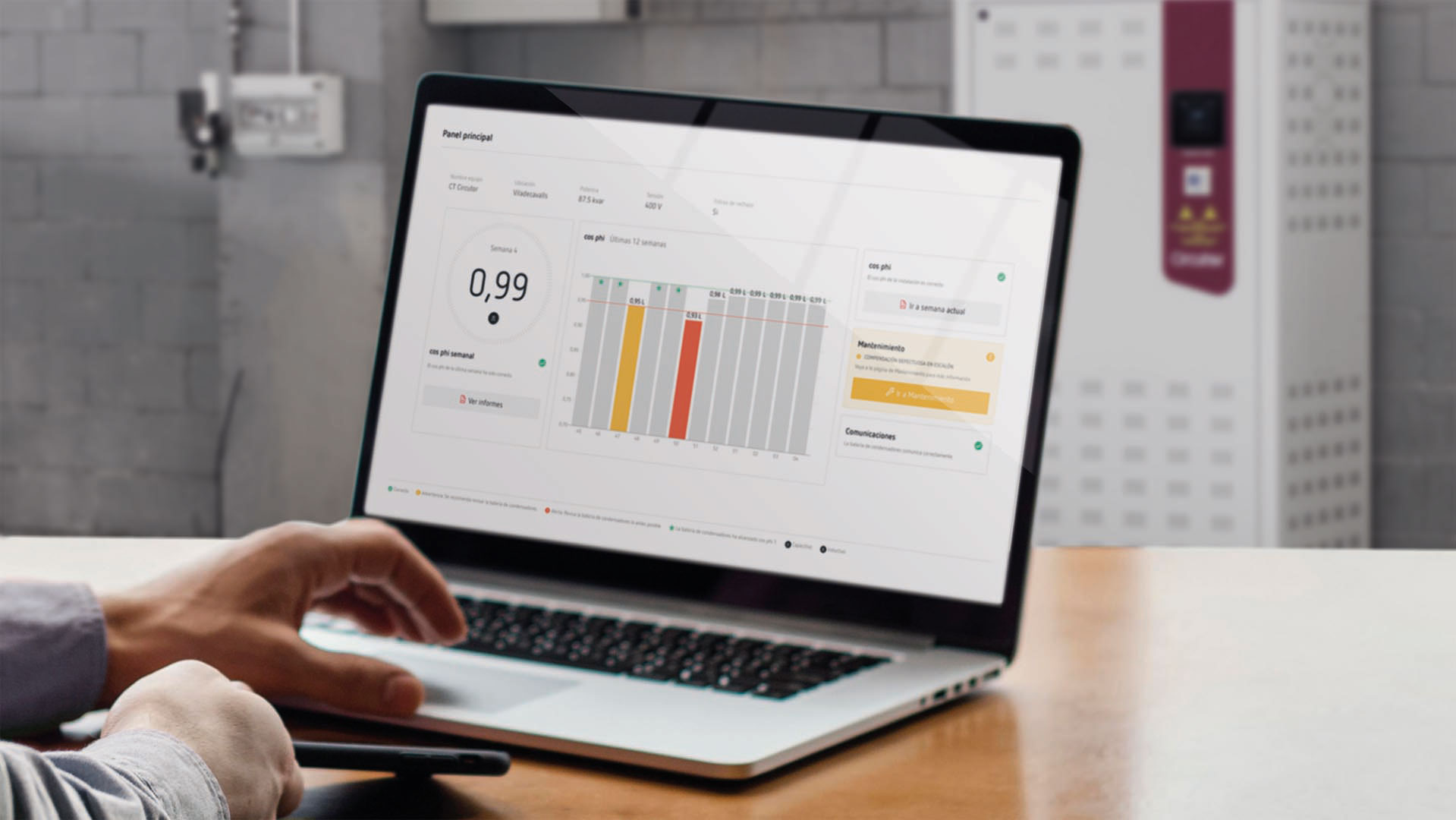 Application web pour la surveillance à distance du cos phi d'une installation et le contrôle de la maintenance des batteries de condensateurs.