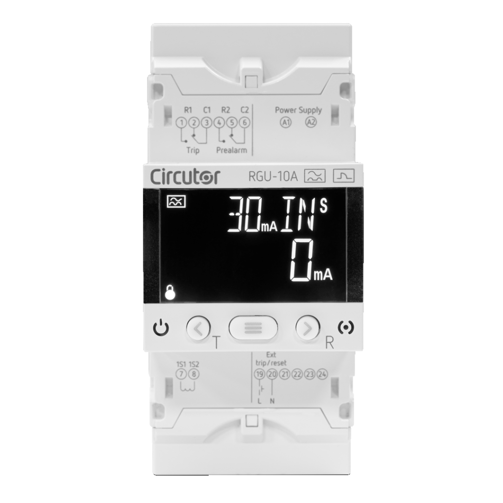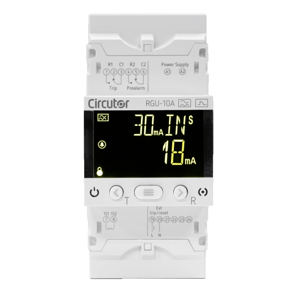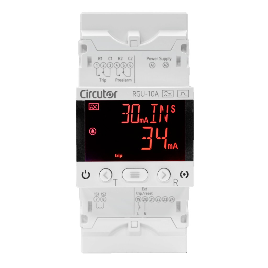 Przekaźnik ochrony różnicowoprądowej RGU-10A sprawia, że interpretacja danych jest jeszcze łatwiejsza niż z jego poprzednika RGU-10. Podświetlany ekran zmienia kolor w zależności od stanu urządzenia, aby umożliwić identyfikację mierzonej linii za jednym spojrzeniem, świecąc na czerwono, jeśli przekaźnik zadziałał ze względu na skumulowany upływ, i na żółto, jeśli poziom upływu przekroczy poziom przedalarmowy, na niebiesko w trybie programowania i na biało jeśli w znajduje się trybie monitorowania bez alarmu.
